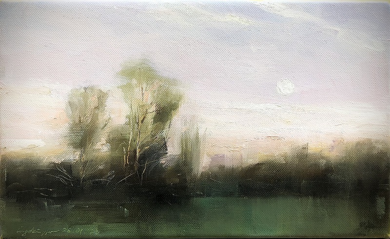 Hierbei waren mir zu Anfang immer wieder Studien vor der Natur sehr wichtig, in denen ich versuchte das Wechselspiel des Lichtes, die Stofflichkeit der Atmosphäre oder die Differenzierung der Farbe zu ergründen. Über die vielen Jahre der Auseinandersetzung mit diesem Sujet, ging der Anspruch über das reine Portraitieren einer Landschaft bald weit hinaus und der Blick für das Detail wurde langsam immer dichter. Ich entdeckte in Naturausschnitten einen neuen Aspekt der Landschaftsmalerei für mich. Zuletzt entwickelte sich parallel zur Auseinandersetzung mit dem Thema "Veränderung der Landschaft durch Klima-wandel" mein neuer Arbeitszyklus "Polarlandschaften" . . .